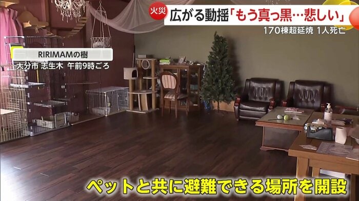 別の場所には、ペットと共に避難できる場所も開設されていた。