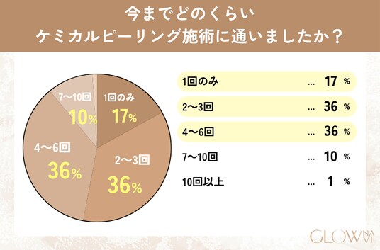 - ケミカルピーリングに「2~6回」通ったと答えた人がほとんど