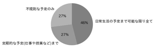 紙または電子機器に記入して予定管理しないと回答した人は全体の24%
