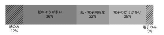 なお、紙か電子かを問わず専門書・教科書を普段読むと回答した人の割合は、38%と限定的であり、その人たちに限って紙と電子で合算した場合でも、読書時間は83分だった。