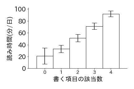 図8. 本や新聞・雑誌を読む人と、いずれも読まない人における、書く項目の該当数