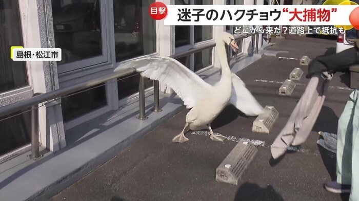 島根・松江市の市街地で、大型の白鳥「コブハクチョウ」の姿がカメラに捉えられた。