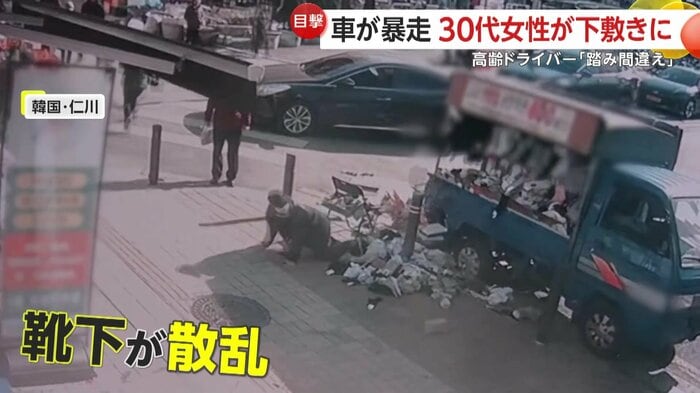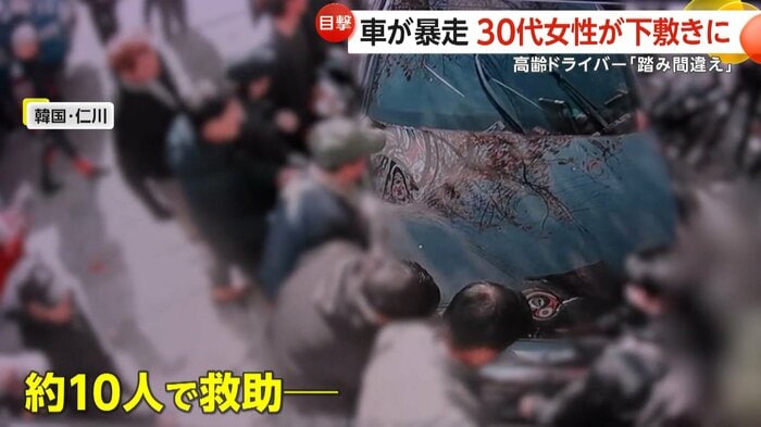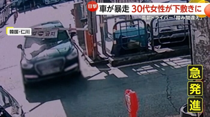 韓国・仁川で18日、車が暴走する瞬間をカメラが捉えた。