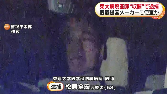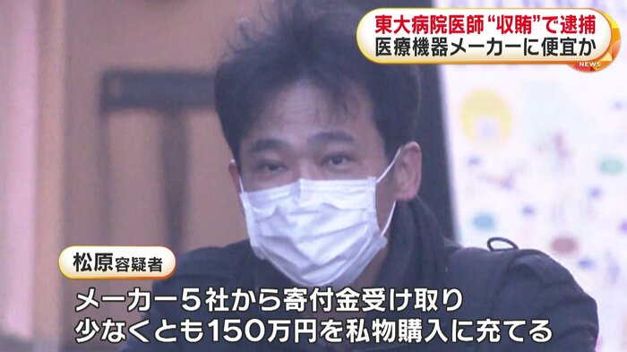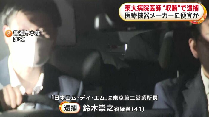 東京大学医学部附属病院の医師が医療機器メーカーの製品を優先的に使う見返りに賄賂を受け取った疑いで逮捕された。