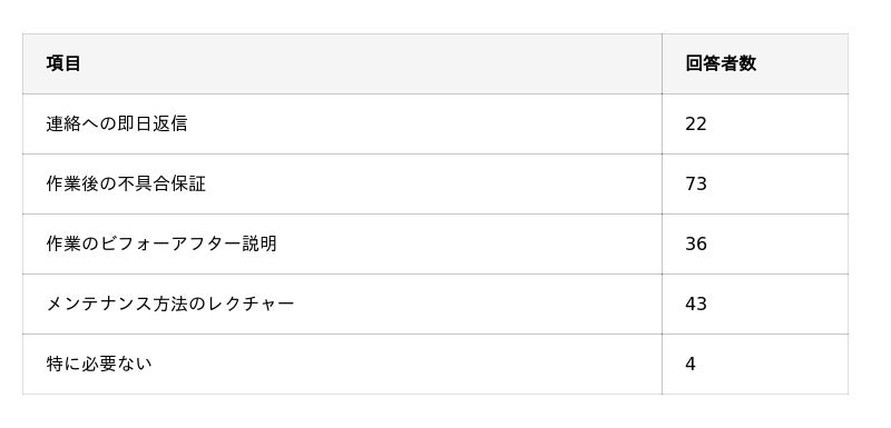 エアコンクリーニングの初回利用時にあると嬉しいフォロー内容は何ですか?(複数選択可能)