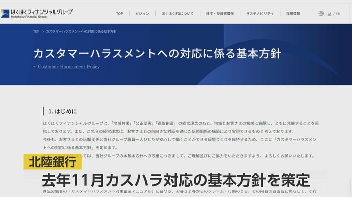 同行は2024年11月、カスハラへの対応基本方針を策定。カスハラと判断される場合には落ち着いた話し合いを求め、行為が継続する場合や悪質と認められる場合には警察や弁護士に相談するなどと定めた。