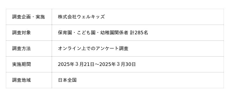 園向けICTサービスを提供する株式会社ウェルキッズ(本社:東京都港区、代表取締役:濱之上 一人)は、保育園・認定こども園・幼稚園の関係者で、いずれかの園向けICTサービスを導入・利用している285名を対象に実施したICT活用状況調査アンケートの結果を発表しました。