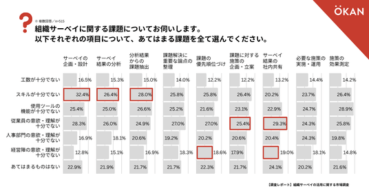 「望まない離職」を生まない組織づくりを支援する株式会社OKAN(本社:東京都豊島区、代表取締役:沢木恵太、以下OKAN)は、組織サーベイを実施している企業の経営者・役員・人事担当者515名を対象に、組織サーベイの活用に関する市場調査を行いました。