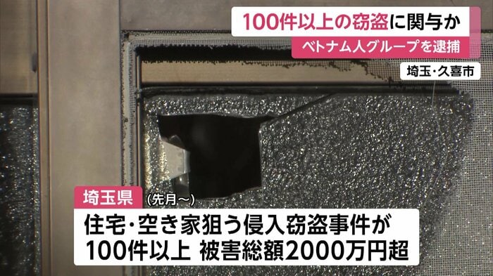 埼玉県内では10月以降、久喜市などで住宅や空き家が狙われる侵入窃盗事件が100件以上相次ぎ、被害総額は2000万円を超えていて、警察は、このグループが関与しているとみて捜査している。