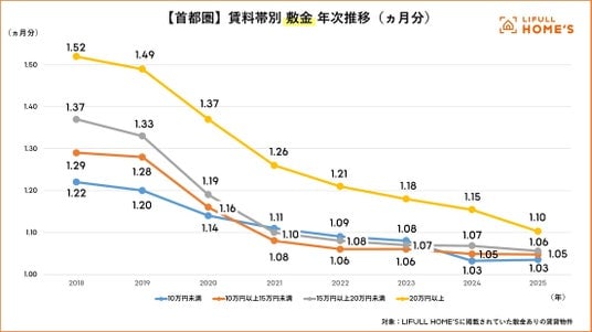 LIFULL HOME'S首都圏の敷金年次推移2025年