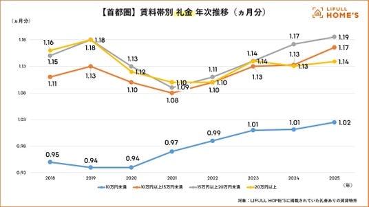 LIFULL HOME'S首都圏の礼金年次推移2025年
