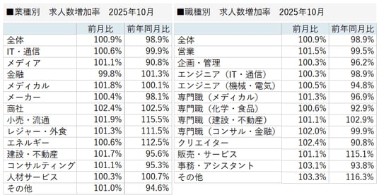 【求人数増加率(業種別・職種別)】