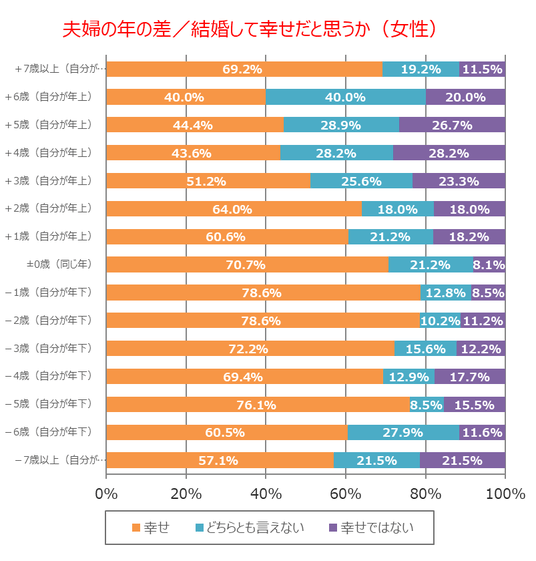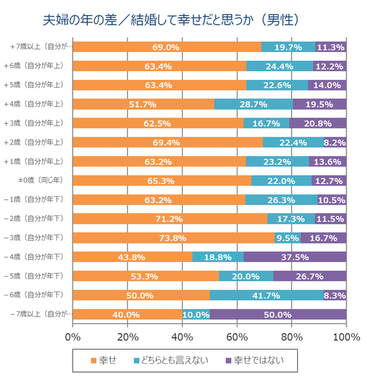 どのような年の差であっても、結婚して幸せだと思う割合が50%を超えました。