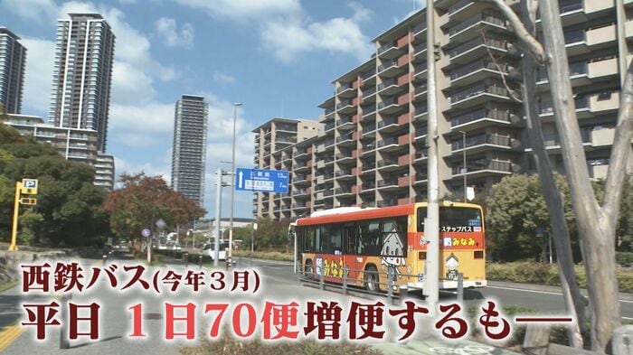 アイランドシティには鉄道が通っていないため交通手段はバスが中心。2025年3月のダイヤ改正で、西鉄は70便のバスを増便をした。しかし住民は「もう昭葉を出る頃には、バスが超満員になっている」(男性)や「飲みに行ったりすると、帰って来るのがタクシーしかないので、できたら夜遅くまで交通機関が欲しい」と話す。