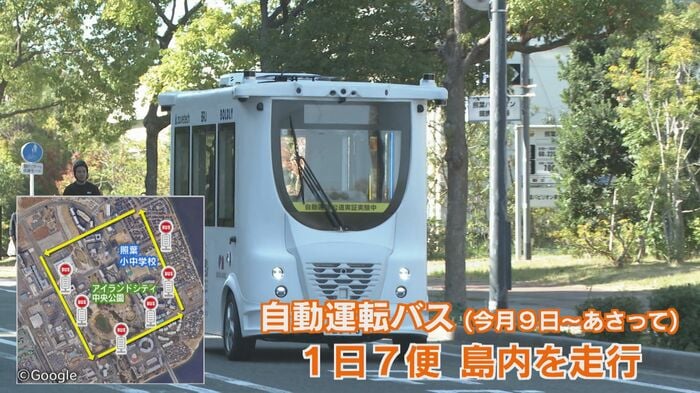 1日7便の自動運転バスが島内を走行。従来、路線バスが通らないルートを補完する。