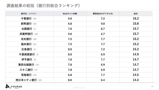 Webサイト体験と顧客接点のデジタル化を14項目で評価。地銀の総合ランキングを発表