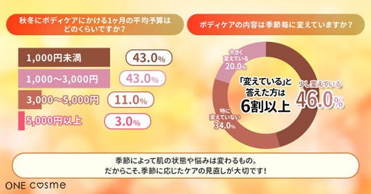 【秋冬にボディケアにかける1ヶ月の平均予算はどのくらいですか?/ボディケアの内容は季節毎に変えていますか?】