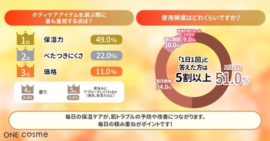 【ボディケアアイテムを選ぶ際に最も重視する点はどこですか?/使用頻度はどれくらいですか?】