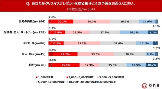 Q4. あなたが【クリスマスプレゼント】を贈る相手とその予算をお答えください。(単数回答/n=354)