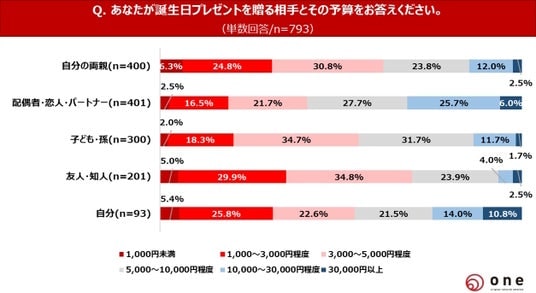 Q3. あなたが【誕生日プレゼント】を贈る相手とその予算をお答えください。(単数回答/n=793)