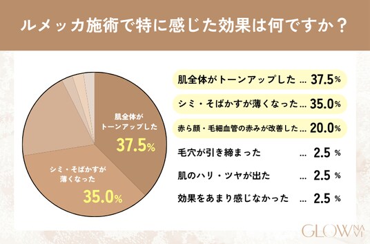 - ルメッカの施術後の効果として「肌トーンがアップした」と回答した人が最も多い