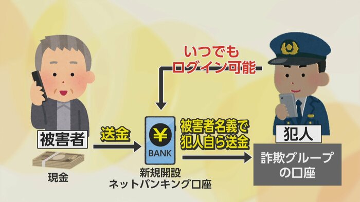 県警組織犯罪対策課の横山次席は「捜査機関がインターネットバンキングを作ってお金を振り込んでくれということは絶対にない。そういう電話があったら詐欺」と注意喚起する。