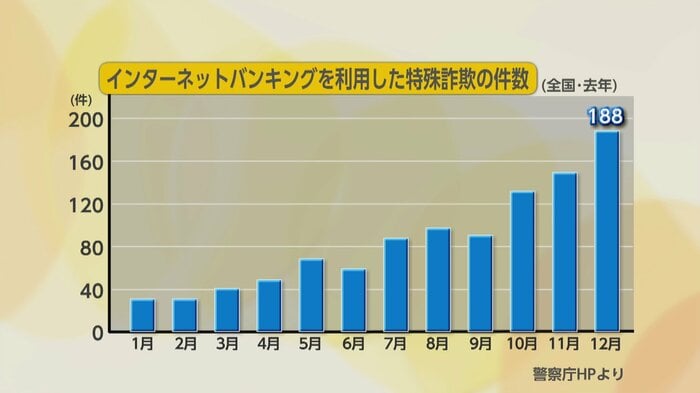 県内では今年に入りインターネットバンキングを利用した特殊詐欺が18件確認され、被害額は4億6000万円を超え、昨年の16倍にまで膨れ上がっている。先月にも同様の手口で1億600万円あまりの被害が確認された。