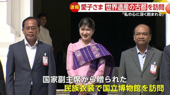 愛子さまは、ラオスの国家副主席から贈られた民族衣装に身を包み、国立博物館を訪問された。