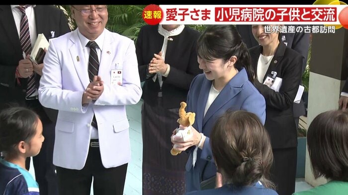 愛子さまは、子どもから象のぬいぐるみを受け取ると、笑顔で「かわいい、どうもありがとう」と感謝を述べられた。