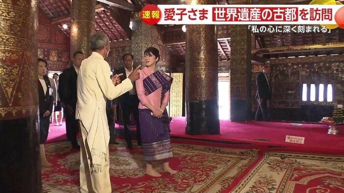 愛子さまは、王の葬儀で使われた黄金の霊柩車を納めた車庫のほか、本堂を参拝し、仏像を前に、こう述べられた。