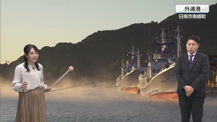 こちらは20日朝の日南市南郷町、外浦港(とのうらこう)の様子なんですけれども、冬の風物詩、「けあらし」が見えたそうなんです。