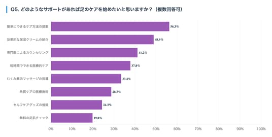 どのようなサポートがあれば足のケアを始めたいと思うか調査しました(複数回答可)。