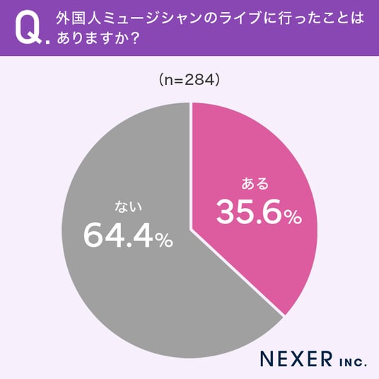 また、洋楽に興味がある方のうち、外国人ミュージシャンのライブに行ったことがある方は35.6%でした。