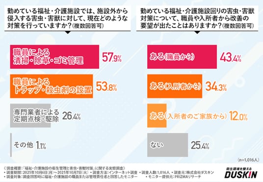 害虫・害獣対策は「職員による対応」が主流。改善要望は職員・入所者双方から