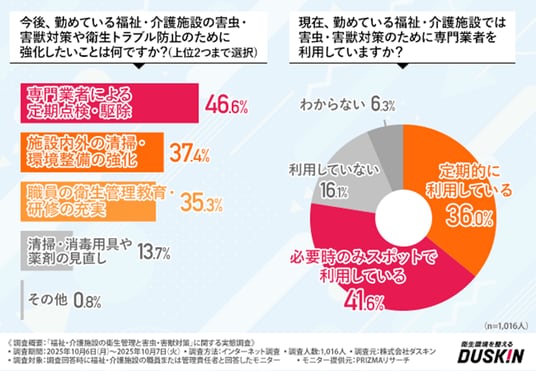 【調 査 名】 「福祉・介護施設の衛生管理と害虫・害獣対策」に関する実態調査【調査期間】 2025年10月6日(月)~2025年10月7日(火)
