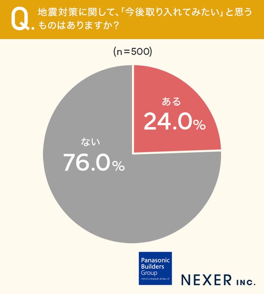 ■24%が、地震対策に関して「今後取り入れてみたい」と思うものが「ある」