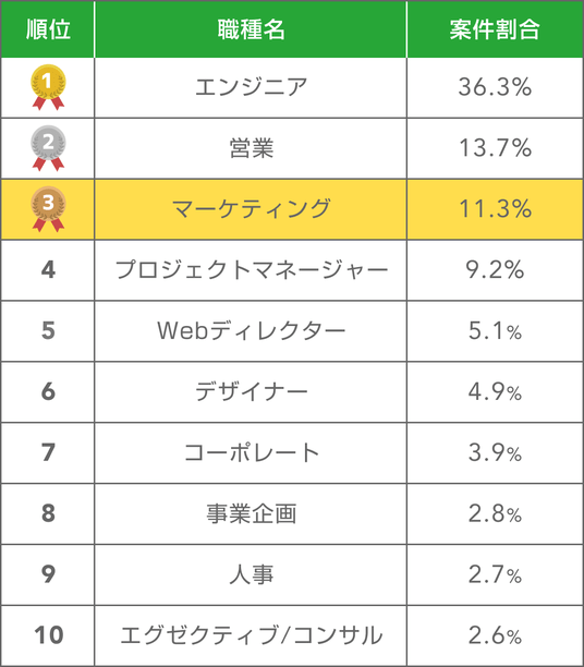 マーケティング 3位 案件比率11.3%