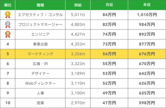マーケティング案件の平均年収