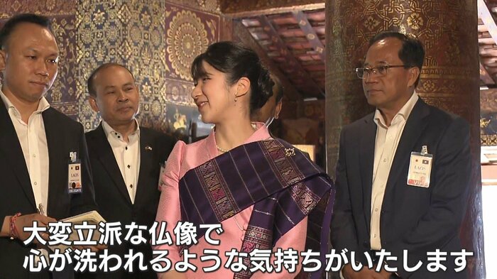 到着後は、ピンクと紫の鮮やかな民族衣装に着替えられましたが、この衣装も含めて愛子さまが着用されたラオスの民族衣装は、ラオスの国家主席夫人が選ばれたものだといいます。