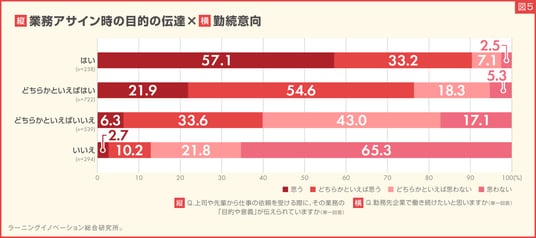 - アサイン時に業務の目的・意義が伝達される若手社員、「働き続けたいと思う」9割超が回答(図5)