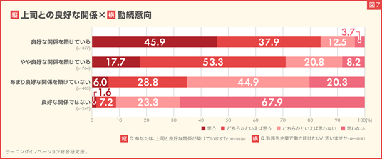 6.上司と良好な関係が築けている若手社員、8割超が勤続意向あり。良好でない層は1割未満