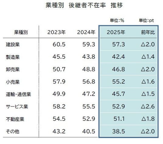 全国「後継者不在率」動向調査(2025年)