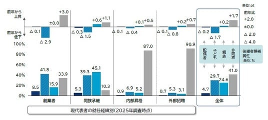 後継者候補属性:「非同族」が初の40%超え 「親族」が増加