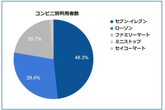 主な利用コンビニは「セブンイレブン(48.3%)」「ローソン(29.4%)」「ファミリーマート(20.7%)」で大半を占めたが、回答傾向に大きな差は見られなかった。