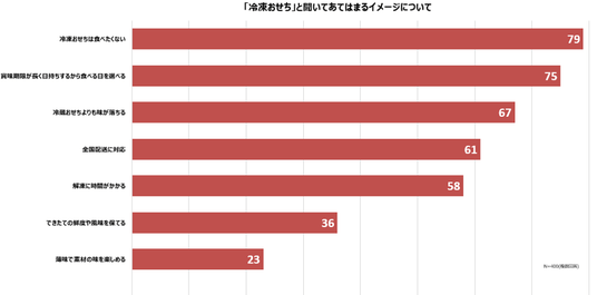 コロナ過を経て増加傾向にある「冷凍おせち」の印象について尋ねたところ、1位「冷凍おせちは食べたくない」となりましたが、2位「賞味期限が長く日持ちするから食べる日を選べる」や4位「全国に配送対応」、6位「できたての鮮度や風味が保てる」など、冷凍ならではの利便性がランクインしました。ライフスタイルの変化に適している「冷凍おせち」は、当社において近年商品数は拡大傾向にあります。