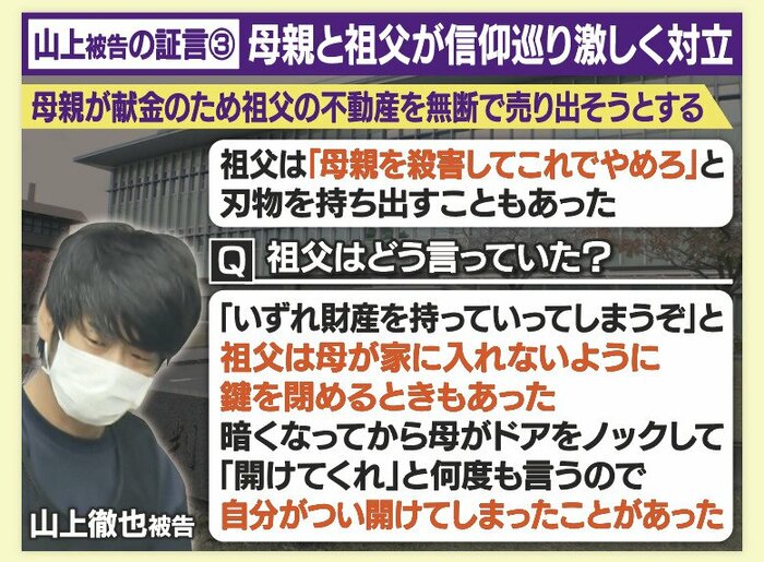 祖父は「母親を殺害してこれで止めろ」と、刃物を持ち出すこともあるなど、祖父との間で衝突を繰り返していたと語りました。