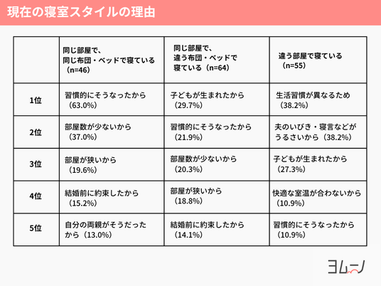 「同じ部屋で違う布団・ベッドで寝ている」理由は?(アンケートの声より)