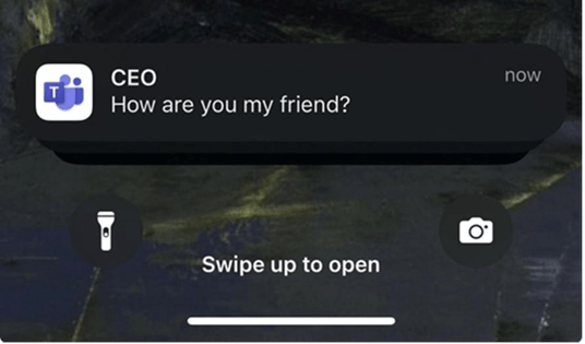 - 通知の偽装:通知を偽装し、信頼できる同僚や役員からの通知に見せかける