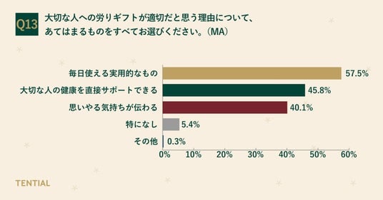 Q13:大切な人への労りギフトが適切だと思う理由について、あてはまるものをすべてお選びください。