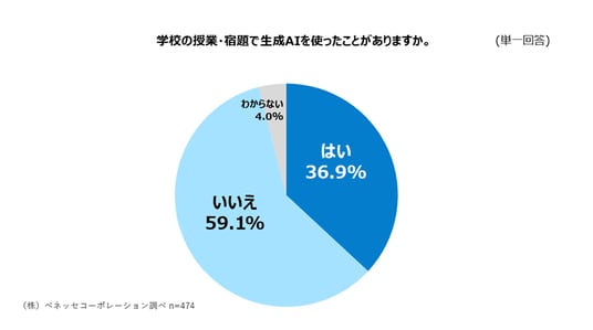 小学生の約4割が学校の授業や宿題で生成AIを活用した経験があると回答しました。学校現場での生成AIの活用が一定程度広がりつつあることがうかがえます。